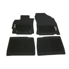 Helps protect vehicles factory carpet against mud- sand- stains and soils. Made from a durable rubber/vinyl material that is easy to clean. Black mats feature ribbed channels and an embossed vehicle logo. Nibbed backing and quarter-turn fasteners (on the driver's side) help keep the mats in position. Removable- lightweight and easy to clean. Helps protect vehicles factory carpet against mud- sand- stains and soils. Made from a durable and flexible thermoplastic elastomer that is easy to clean. - Condition: New